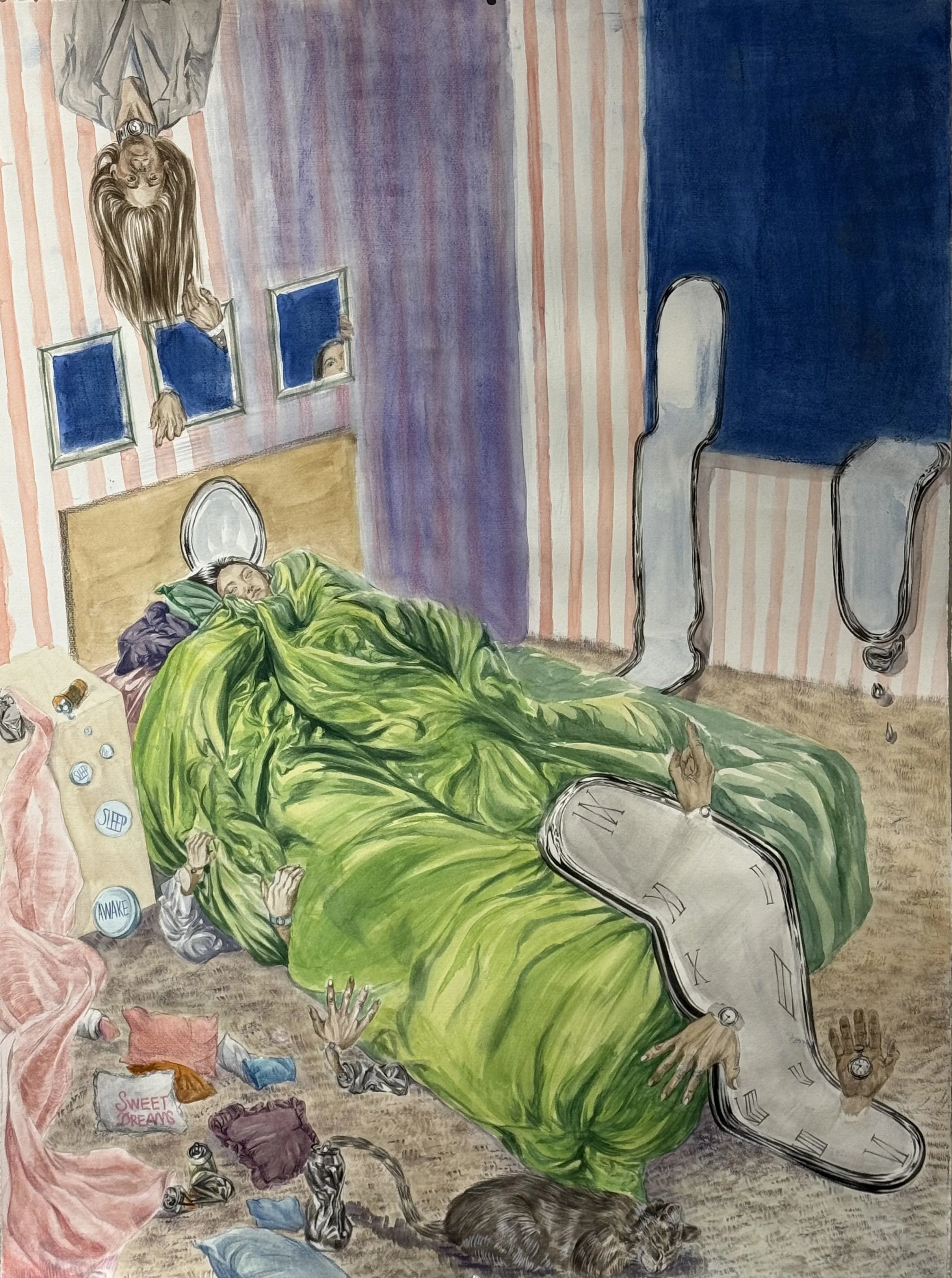 Awake in Sleep, 2025, 22 × 30 in, watercolor and soft pastel on paper